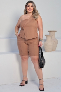 Linho, viscose, elastano e poliéster forrado. Bolsos frontais e posteriores acompanha cinto forrado com detalhes dourados.