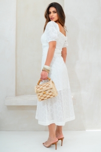 Um vestido que traduz feminilidade em cada detalhe. Confeccionado em algodão 100% com forro em poliéster, traz a leveza do franzido no busto, a delicadeza das mangas bufantes e o toque sofisticado da fenda frontal. As costas com lastex garantem conforto e ajuste perfeito ao corpo, tornando esta peça tão charmosa quanto versátil.